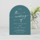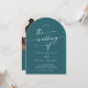 Boho Teal Blue Photo QR Code Arch Bröllop Inbjudningar