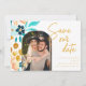 Boho Teal Blue och Guld Watercolor Blommigt Bröllop Spara Vårt datum med ditt foto
