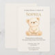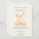 Perfekt för boho-teman och könsneutrala bebisshower, denna redigerbara design har mjuka neutrala toner och en charmig illustration av en teddybjörn.