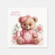 Boho Teddy Bear Girl Pink Bear Floral Birthday Pappersservett