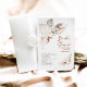 Vita orkidéer, mjukt bruna pampasgräs, sage dry handflatan löv och terracotta hues exotic öken inbjudningskort för möhippa