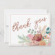 Uttryck din tacksamhet med detta eleganta blomstermotiv tackkort med en romantisk akvarellbukett i terrakotta, rosaton och mjuka gröna toner. Designad för att samordna vackert med höstens bröllopsfest pappersvaror, innehåller detta kort graciös script-skrift och en ren modern layout. Perfekt för att tacka gäster för deras kärlek, gåvor och stöd efter en bröllopsfest eller bröllopsfirande.