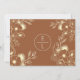 Elegant, modern boho, blommig, bränd orange terracotta bröllopsinbjudan med guldfärgade vilda blommor spets.