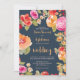 Den här handmålade bröllopsinbjudan sprider sig med personlighet och rikens hösttoner. En marin blå bakgrund ställer in scenen för pulserande blommigtar med vattenfärg i terracotta, bränd orange och ro rosa, vilket gör att du får en aning rysk charm och romantik till din speciella dag. Perfekt för fall, bohemi eller bröllop på landsbygden, den varma färg-paletten och den feta blommigten gör att denna design känns både konstnärlig och oförglömlig. Det går att redigera dina detaljer i kostym. Den här utformningen fungerar utmärkt för det moderna par som vill ha en blandning av färg och karaktär.