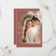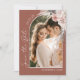 Boho Terracotta Pampas Grass Photo Bröllop spara datum Card hjälper dig att de bra nyheterna om din förlovning och kommande bröllop. Den här minimalistiska stil har två foton på en terracotta-jordtonsbakgrund med en bågdesign och ett modernt skript. Vackra blommigtar med pappa gräs och eukalyptus accentuerar kortet. Anpassa med egna foton och detaljer om bröllop.