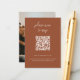 Boho terracotta QR Bröllop OSA-fotokort. Utformningen har en modern minimalistisk inställning med QR-kod och skript på framsidan och ditt bröllop-foto på baksidan. Anpassa den med din information. Visa andra matchande produkter från den här samlingen.