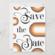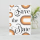 Förundra dina vänner och din familj med de här moderna Spara datumkorten, som innehåller retrotypografi, boho-rainbågar, ett foto och en anpassningsbar efter eget val. Lägg enkelt till din egen information genom att klicka på alternativet "anpassa".