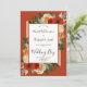 Denna vackra, moderna, rustiska boho-design har en terracotta-bakgrund i riken med persikobuketter, neutralt vita och ökenblommor, baby-andedräkt, rost ro och dahlias, pampasgräs, bohemiska fjädrar och grönenergi, inklusive eukalyptus löv och ferner. Bakom buketterna finns en persikorektangel, och framtill är ett vitt område med kopparkanter, med anpassadet brunt i trendig, med elegant, handskrivet kalligrafskript och sans serif-typografi. Baksidan matchar terracotta. Du kan anpassa det här objektet för din speciella händelse genom att ändra texten i produktmallen.