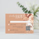 Sätt tonen för din speciella dag med vårt förtrollande boho-rustika svarskort med QR-kod till bröllopet. Med en mjuk terrakotta-rostbakgrund är denna design prydd med en fantastisk spruta av akvarellblommor och torkade gräs. Ömtåliga nyanser av persikoblush, kräm och ljust sagegrön lövverk, sammanflätade med ljust beige torkade gräs, skapar en harmonisk blandning av rustik charm och bohemisk elegans. Perfekt för en sommar- eller höstbröllop som är unikt för dig. Skapad av Simply Farmhouse Press.