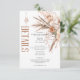 Sätt tonen för din speciella dag med vårt förtrollande boho-rustika bröllopsdetaljer inklusionskort. Med en strålande vit bakgrund är denna design prydd med en fantastisk spridning av akvarellblommor och torkade gräs. Ömtåliga nyanser av persikoblush, kräm och ljust salvia grön lövverk, sammanflätade med ljust beige torkade gräs, skapar en harmonisk blandning av rustik charm och bohemisk elegans. Perfekt för ett sommar- eller höstbröllop som är unikt för dig. Skapad av Simply Farmhouse Press.