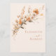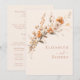 Visa dina gäster runt din stora dag med stil med detta Boho Terracotta Vildblommor Höst Bröllopsprogram. Med en mjuk, kaskaderande arrangemang av akvarell vildblommor i varma terrakotta- och brända orange toner, frammanar denna design den avspända, romantiska känslan av en rustik höstfirande. Layouten är ren och modern, perfekt för att visa era ceremonidetaljer samtidigt som allt hålls vackert tematisk.