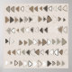 En geometrisk boho mönster av motstående rader av löst fyllda trianglar i en brun, taupe och elfenbenspalett.