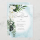 Den här designen har vackra, lush tropik gröna och vita blommigtar på en mjuk västindiska akvariefärg vattenfärgsbakgrund. Perfekt till destinationen eller till badduschbrunch. Skapat av Farmhouse Press.
