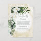 Den här kortdesignen i bröllop har vackra, snygga och vita blommigtar i tropiken på en mjuk gult- och vattenfärgsbakgrund. Perfekt till destinationen eller till strandbröllop. Skapat av Farmhouse Press.