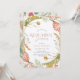 Den här elegantens inbjudan till förnyad middag innehåller en vit bakgrund med tropiska blommor och löv som t.ex. protea och handflatan träd löv i vattenfärg. Anpassa den efter dina behov. Du hittar matchande produkter i min butik.