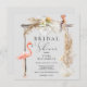 Det vackra inbjudningskort för möhippan har bho bröllop arch med rosa flamingo och exotisk fågel på klocka och försedd med tropiska blommor, protea och pampas.