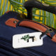 Modern och boho-inspirerad brev F-bagagemärkning. Den har vattenfärgbilder av tropiska kaktuer med faux guld-folie och svart penseldrag. Anpassa genom att lägga till en namn. Den här elegant blommigtens bagagetapp blir perfekt som en gåva, födelsedagspresent och gåva från studenten.