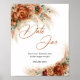 bränt orange datum burk skyltterrakotta bröllopsdusch spelskyltkopparblommorburgunderfärgade blommoreukalyptuspampasgräsrostiga färgerboho tropiskökentorkad fläktt palma