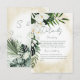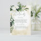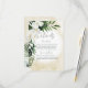 Denna bröllopsdetaljkortdesign har vacker, frodig tropisk grönska och vita blommor på en mjuk gul sand vattenfärgsbakgrund. Perfekt för destinationen eller strandbröllopet. Skapad av Simply Farmhouse Press.