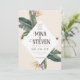 Den tropiska geometriska Banana-Löven i Bröllop spara datum har en modern utformning med geometriskt mönster och levande banans löv, perfekt för att meddela er speciella dag med contemporary stil och tropiskt flluft.