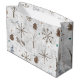 En boho-vattenfärg mönster med snöflingor gjord av kvistar, träd grenar, stockar och pinekoner som är kapade i snö-borrningar. Det här rustiska mönster har en varm julvibe i hemmet. Den här presentsäcken finns i en naturlig boho färg-palett och har skugga av brunt, beige och stålblått. Vi har tillhandahållit valfri text "Season's Greetings" och du kan anpassa den med ditt namn och datum. Sök i ID986 för att se alla produkter som samordnar sig med denna vackra jul mönster.