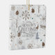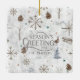 En boho-vattenfärg mönster med snöflingor gjord av kvistar, träd grenar, stockar och pinekoner som är kapade i snö-borrningar. Det här rustiska mönster har en varm julvibe i hemmet. Den här prydnadsdesignen finns i en naturlig boho färg-palett och har nyanser av brunt, beige och stålblått. Vi har tillhandahållit valfri text "Season's Greetings" och du kan anpassa den med ditt namn och datum. Sök i ID986 för att se alla produkter som samordnar sig med denna vackra jul mönster.
