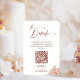 Dela alla dina bröllopsdetaljer på ett stilfullt och modernt sätt med detta Boho blommiga QR-kod bröllopsdetaljkort. Designat med romantiska akvarellblommor i bränd umbra, rosafärgad, elfenben och terrakotta, har detta eleganta infogningskort en anpassningsbar QR-kod - perfekt för att länka till din bröllopswebbplats, resplan, registreringslista eller boende.