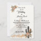 Fira din kärlek med denna fantastiska boho western bröllopsinbjudan, med en lugn bergsutsikt, rustika ökenelement och eleganta blomsterdekorationer. Mjuka neutrala toner smälter vackert samman med varma terrakotta-blommor, pampasgräs och kaktusdetaljer, medan galopperande hästar tillför en romantisk ranchinspirerad touch.