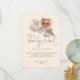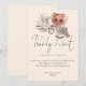 Boho vi kan btidigt vänta på babyfos tack. En charmerande liten björn som håller en klocka med boho-fjädrar och gräs och antikvita bakgrunder. Barly Wait finns i ett skript för snyggt set. Anpassa enkelt resten av texten till dina behov.