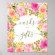 En Boho söt-vild, blommor- och presentkort med handmålad blommigt i rosa, gult, persikoblommor och ro, sage-vild-eukalyptus och grönenergi på möhippa och grönt. Perfekt till sommaren, utomhus brudens sida och bröllop.