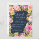 En Boho söt-vild blommor trädgård Söt 16 födelsedag med handmålad blommigt som illustration på rosa, gult, persikoblommor och ro, sage grönt eucalyptus och grönenergi på redigerbar vild marin blått. Perfekt till sommaren, utomhusträdgårdens födelsedagsfest.
