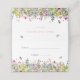 Bohemisk, snygg och elegant, detta vikta platskort för babykalas har en färgrik fält av ömtåliga vilda blommor med fjärilar, humlor och nyckelpigor.