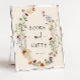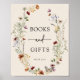 Denna stilrena & eleganta baby shower 'böcker och presenter' skylt | affisch har vackra handmålade akvarell vildblommor arrangerade som en vacker krans och elegant kalligrafi. Hitta matchande föremål i Boho Vildblomma Baby Shower Kollektion.