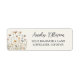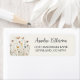 Returadressetikett med vildblomsdesign. Denna minimalistiska och eleganta etikett är perfekt för bröllopsfester, babyfester eller alla som älskar en enkel, tidlös stil. Designen har en elfenbensvit bakgrund för en mjuk, klassisk look. På vänster sida visas en minimal komposition av vildblommor i dämpade, eleganta nyanser av rosablommig rosa, elfenben, mjukt gult och subtila neutrala toner med ömtåliga gröna blad för en raffinerad, naturlig touch.