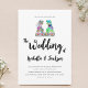 Överraska dina gäster med en rolig och unik dinosaurie-bröllopsinbjudan med en charmig färgglad T-Rex brud och brudgum som står i en livfull äng med vilda blommor. Perfekt för ett boho-inspirerat bröllop med vilda blommor som tema, denna design innehåller vackra akvarellblommor i nyanser av blå, rosa, gul, orange, persika, lila, vinröd, marinblå och grön, som frammanar vårens och sommarens värme. Den fantasifulla moderna skriften ger en touch av lekfullhet, medan lättanvända mallar låter dig anpassa inbjudan med brudens och brudgummens namn, bröllopsdatum och alla viktiga detaljer. Denna originella konst av konstnären Catherine Sweetman fångar den glada