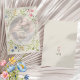 Romantisk boho-vildblommabridinvitation med mjuk elfenbensvit bakgrund, akvarellblommig krans och ditt foto under en genomskinlig överdrag. Baksidan har ett delikat monogram med handmålade blommor för en personlig touch. Perfekt för vår- och sommarmässor, trädgårds- eller landsbygdshögtider och par som älskar naturliga, konstnärliga designs. Anpassa enkelt texten, fotot och färgerna för att matcha din bröllopsstil. Koordinerar vackert med matchande svarsbrev, menyer och skyltar från samma kollektion.
