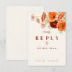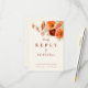 Modern elegant akvarell vildblomma Höst Bröllop RSVP bifogad kort, det perfekta komplementet till din bröllopsinbjudan. Med unika boho handmålade akvarell vildblommor av konstnären Catherine Sweetman, fångar detta kort höstens skönhet med sin eleganta torkade blommadesign. Den eleganta brända orange nyckfulla skrivstilen och moderna typografin ger en stilren touch, medan det jordnära färgschemat i bränd orange, terrakotta, rosa, lila, brun och beige frammanar årstidens värme. Den lättanvända mallen låter dig inkludera alla viktiga RSVP-detaljer. Perfekt för sensommar- och höstbröllop, är detta RSVP-kort designat för att passa perfekt med en boho, rustik bröllopst