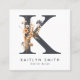 Boho Vildblomma Initial K QR-kod Fyrkantigt Visitkort