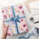 Vacker design med rosa, orange, korall, lila och beige vildblommor på detta inpackningspapper. Perfekt för födelsedagar, bröllop, bröllopsfester och baby shower.