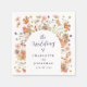 Ta med höstfärger inklusive rik mörkblå och vit båge och fantasifulla vilda blommor i höstfärger ger boho rustik charm till ditt höstbröllopsbord med dessa personliga servetter, inspirerade av skönheten i en fantasifull vildblomsbåge. Med original handmålad akvarellblomma på en elegant vit bakgrund unik konst av Catherine Sweetman, visar designen handmålade vilda blommor i jordnära toner av bränt orange, terrakotta, plommon, persika, korall, mjuk rosa och gyllene gult runt en krispig vit elegant båge perfekt för en höst-, sensommar- eller vårfest. Den mjuka, bohemiska stilen passar vackert ihop med en blandning av elegant mörkblå skrift och modern typografi, så att du kan lägga till br