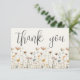 Tackkort med vilda blommor. Denna minimalistiska och eleganta design är perfekt för bröllopsfester, babyfester eller någon som älskar en enkel, tidlös stil. Framsidan har en elfenbensvit bakgrund med ”tack” i ett graciöst skrivstilsskrift, med en minimal komposition av enkla vilda blommor längs ned i dämpade, eleganta toner av rosafärgad, elfenbensvit, mjuk gul och subtila neutrala nyanser med ömtåliga gröna blad för en raffinerad, luftig touch.
