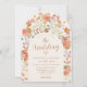 Överraska dina gäster med denna fantastiska terrakotta höstbröllopsinbjudan med vildblomsvalv som vackert kombinerar höstlig charm med elegant sofistikation. Med handmålade akvarellvildblommor runt ett graciöst valv frammanar de rika färgerna bränt orange, terrakotta, lila, gul, korall, bränd umbra, persika och mjuk rosa höstens värme. Den eleganta skriften och den moderna typografin tillför en touch av klass medan de lekfulla blommorna ger en personlig, boho-touch. Lätta att använda mallar för att lägga till alla viktiga detaljer om bröllopet. Designad med originalkonst av konstnären Catherine Sweetman, erbjuder denna inbjudan en perfekt balans mellan naturens skönhet och raffinerad elegans, vilket skapar en