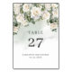 Boho vita rosor Blomsterträdgård grönska och guld bordsnummer