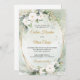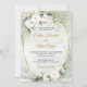 Boho vita rosor grön eukalyptus falskt guld ovala bröllopsinbjudningar,