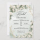 Boho Vita Rosor Grönska Bröllopsfest Inbjudan