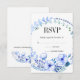 Boho Watercolor Blue Blommigt Bröllop OSA Card Kort