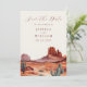 Anpassa enkelt dina bröllop spara datum-kort med den här redigerbara mallen. Har minimal typografi av eleganten med bakgrund av vattenfärgökenbakgrund.