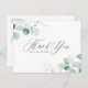 Skicka tack med det här anpassadet tack för vykort. Den har en vattenfärgad illustration av eukalyptus löv och blommar. Anpassa det gröna tack som du skickar ut genom ditt budskap, namn och datum. Tack för att du skickar vykort för vattenfärgen är perfekt för bröllop, babyduschar, möhippor, födelsedagar och mycket annat.