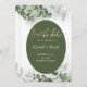 Elegant vattenfärgen eukalyptus greenery sparar datumet. Spara det datum som kan anpassas med ditt namn på ett bra sätt. Klicka på knappen "anpassa" om du vill ändra teckensnittet stil, färg och storlekt.
