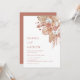 This elegant contemporary wedding invitation features watercolor painted orchid flowers and terracotta pampas grass on a white background.